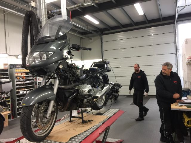 Terwijl ze bezig waren lichtte Kenny mij in mbt de bevindingen. Gelukkig was er niks drastisch en tijdens het gesprek zijn we overeen gekomen dat ze gelijk een 0-beurt konden verrichten. Dit was denk ik het meest logische want het Tupperware was er af en ik zou niet nog een keer terug hoeven voor deze beurt. Het enige wat mis was was dat de remvloeistof zwart was ipv mooi helder. Dit terwijl, de verkoper, daar waar ik de motor heb aangeschaft, mij vertelde dat het remsysteem onderhanden was genomen. Zelfs het onderhoudsboekje was afgestempeld en ondertekend. Beetje jammer. Kortom, laat je niet van de wijs brengen door mooie praatjes.
