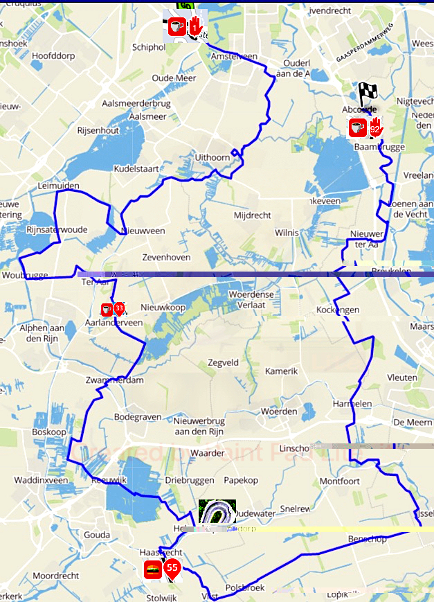 De route kun je vergelijken met de lengte van ongeveer 150 km en de vorm zoals hierboven afgebeeld.