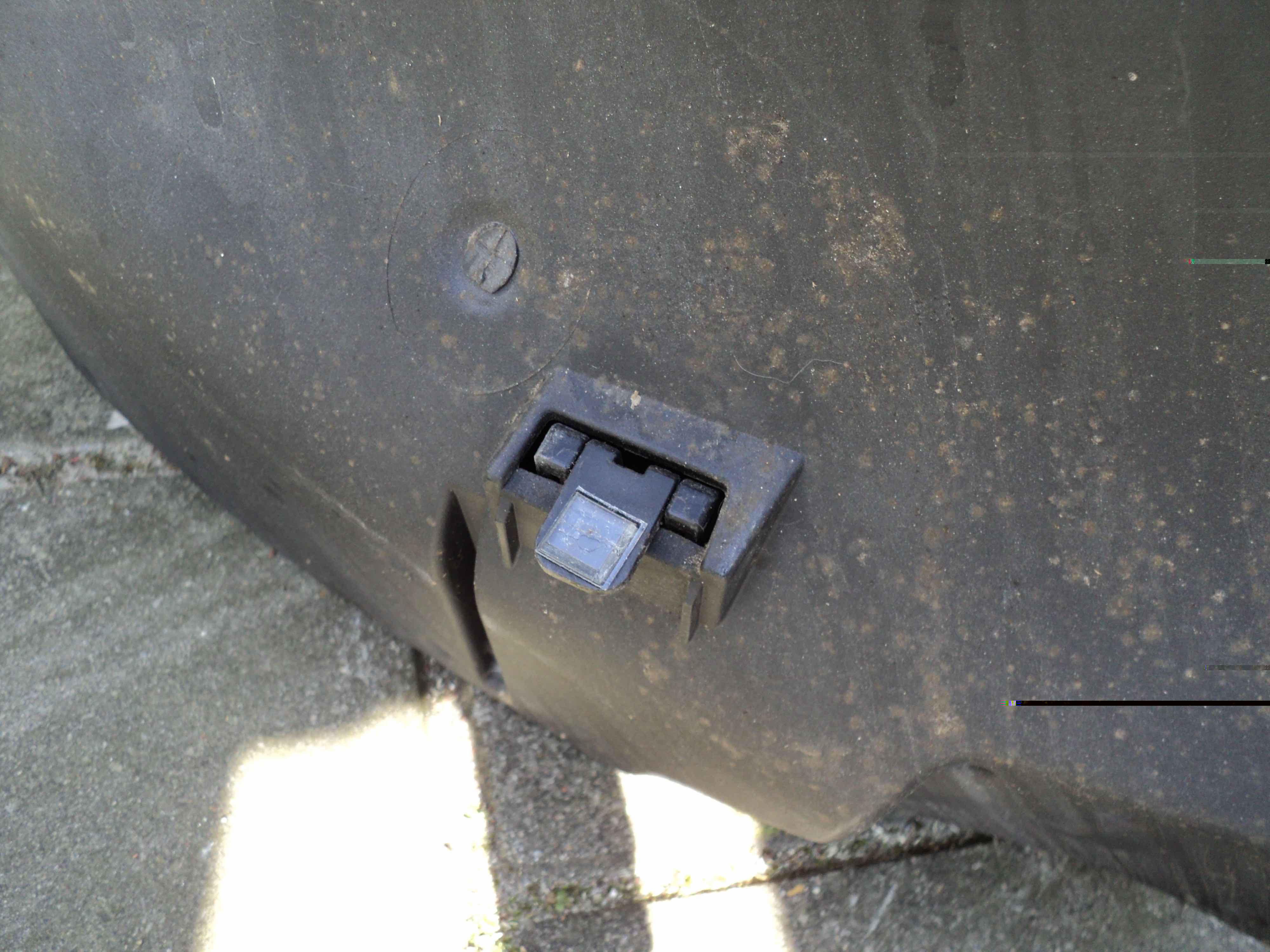 Ik reed over een verkeersdrempel en opnieuw werd de linkerkoffer gelanceerd. Gelukkig was de schade van de vorige keer nog niet hersteld. Bij nader onderzoek bleek dat de "stift", met het plakvoetje waar Inspector Gadget over schrijft en waarvan hij een foto heeft geplaatst, niet vergrendeld wordt. De stift kan gewoon naar beneden gedrukt worden, ook als de koffer op slot zit. Daardoor kan het dus gebeuren dat bij het op-/afrijden van een drempel de koffer gelanceerd wordt.