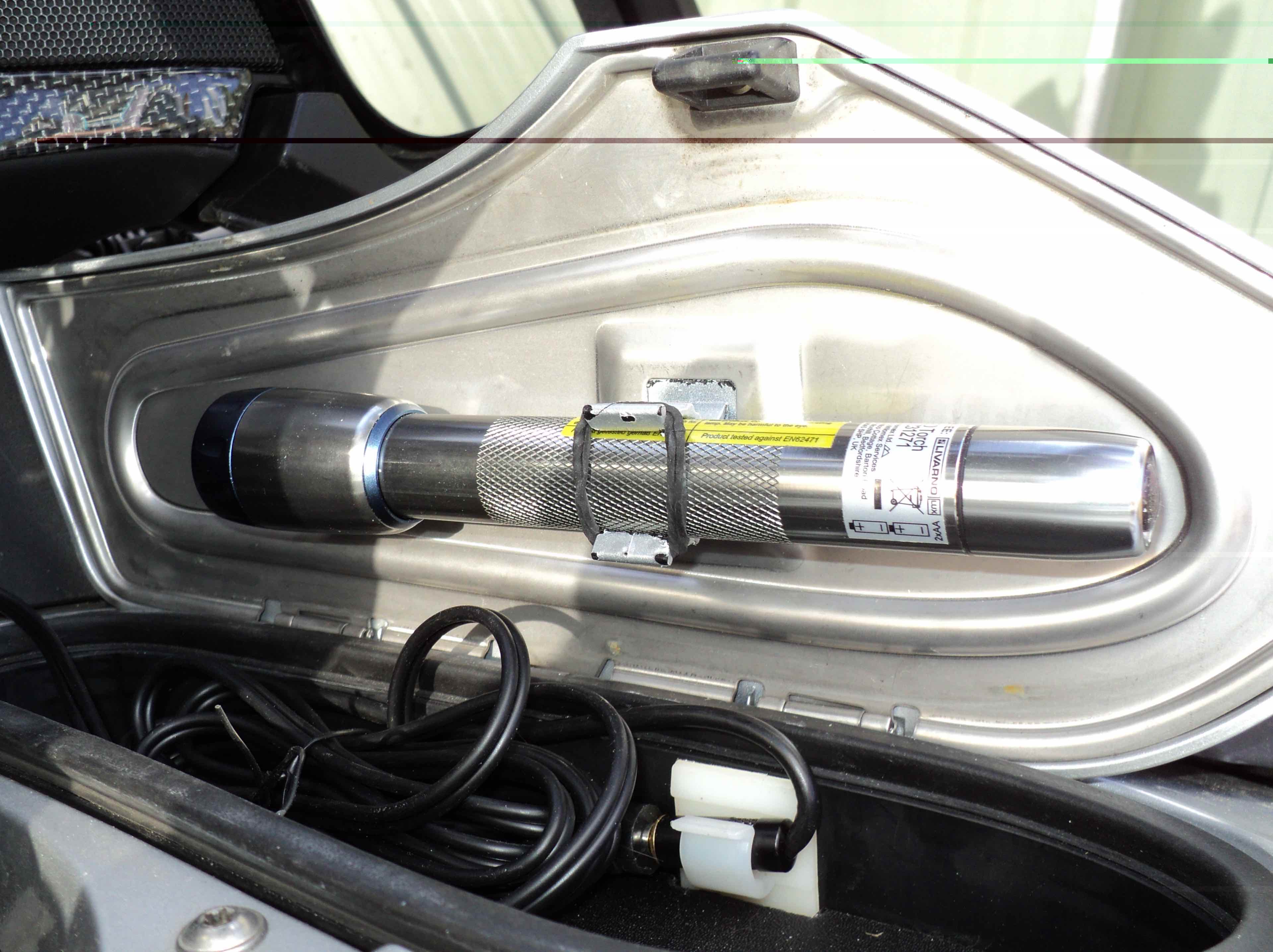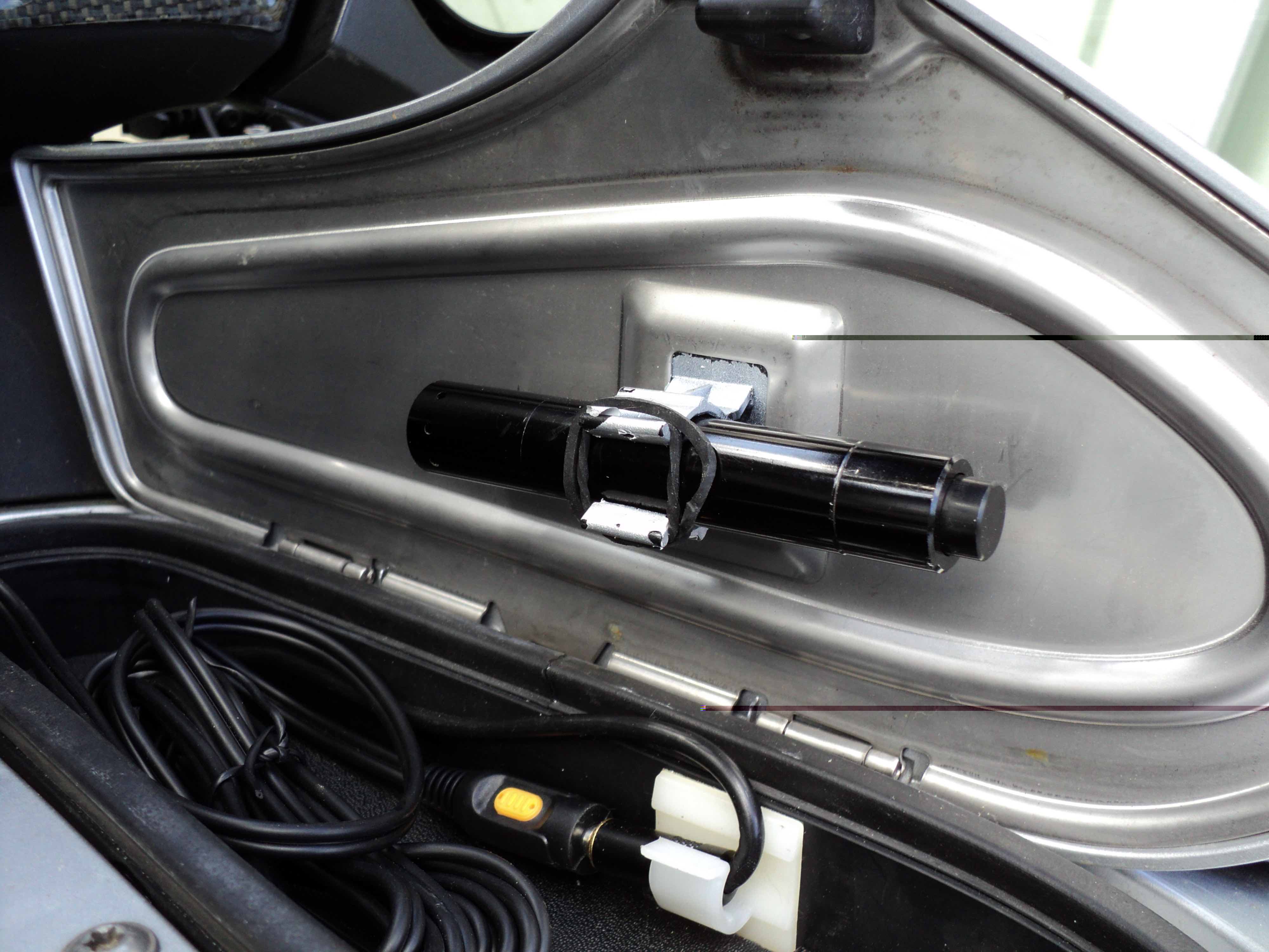 In dit radiovak bewaar ik m'n schijfremslot, flesje water en nog wat zaken. Maar telkens als ik met m'n hand iets wil pakken heb ik last van de houder..