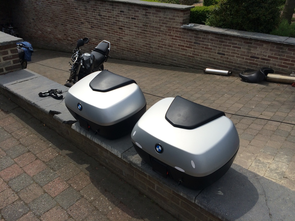 ...ondertussen al even naar Zolder (B) gereden om een mooie grote en betaalbare Top-koffer (49L) te kopen. Tot mijn grote verassing bleek deze motorsloperij er 2 te hebben waaruit ik kon kiezen. Bovendien hadden ze ook nog een zij-koffer set liggen welke ik dus ook maar meteen heb meegenomen... Nog niet direct nodig maar beter mee-verlegen dan om-verlegen!