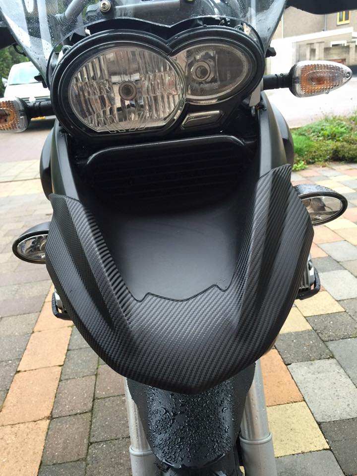 Alle gele plaatdelen van mijn GS gewrapt met matt black folie + 3D carbon