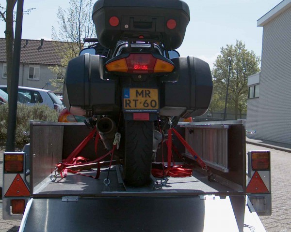 De motor stond hiermee stabiel en goed vast op de aanhanger. Let wel op dat je de motor altijd voldoende ver in de vering trekt. Als je banden onvoldoende vasttrekt staat de motor te "stuiteren" op de aanhanger en krijgen de banden ruimte om los te gaan.