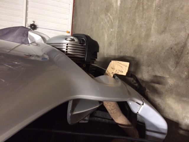 Zijpanelen eraf en even de oliekoeler los gemaakt. 'k had meer dan voldoende ruimte en 't zit op zijn plek