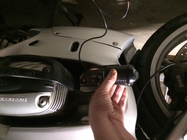 Die oliekoelerverlichting is mooi gelukt, maar ik denk niet dat het aanbevelenswaardig is om er mee te gaan rijden. Het aanzien wordt zo een beetje rommelig.