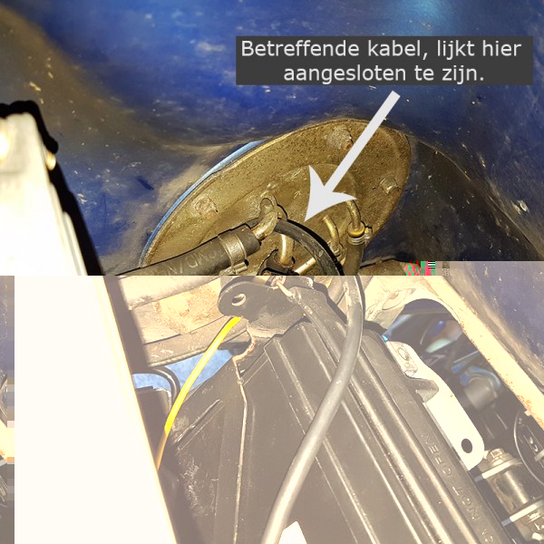 Weet ook absoluut niet waar de andere helft van de kabel heen loopt.. die verdwijnt ergens onder de motor.. mogelijk richting m'n zekeringen/elektronica..