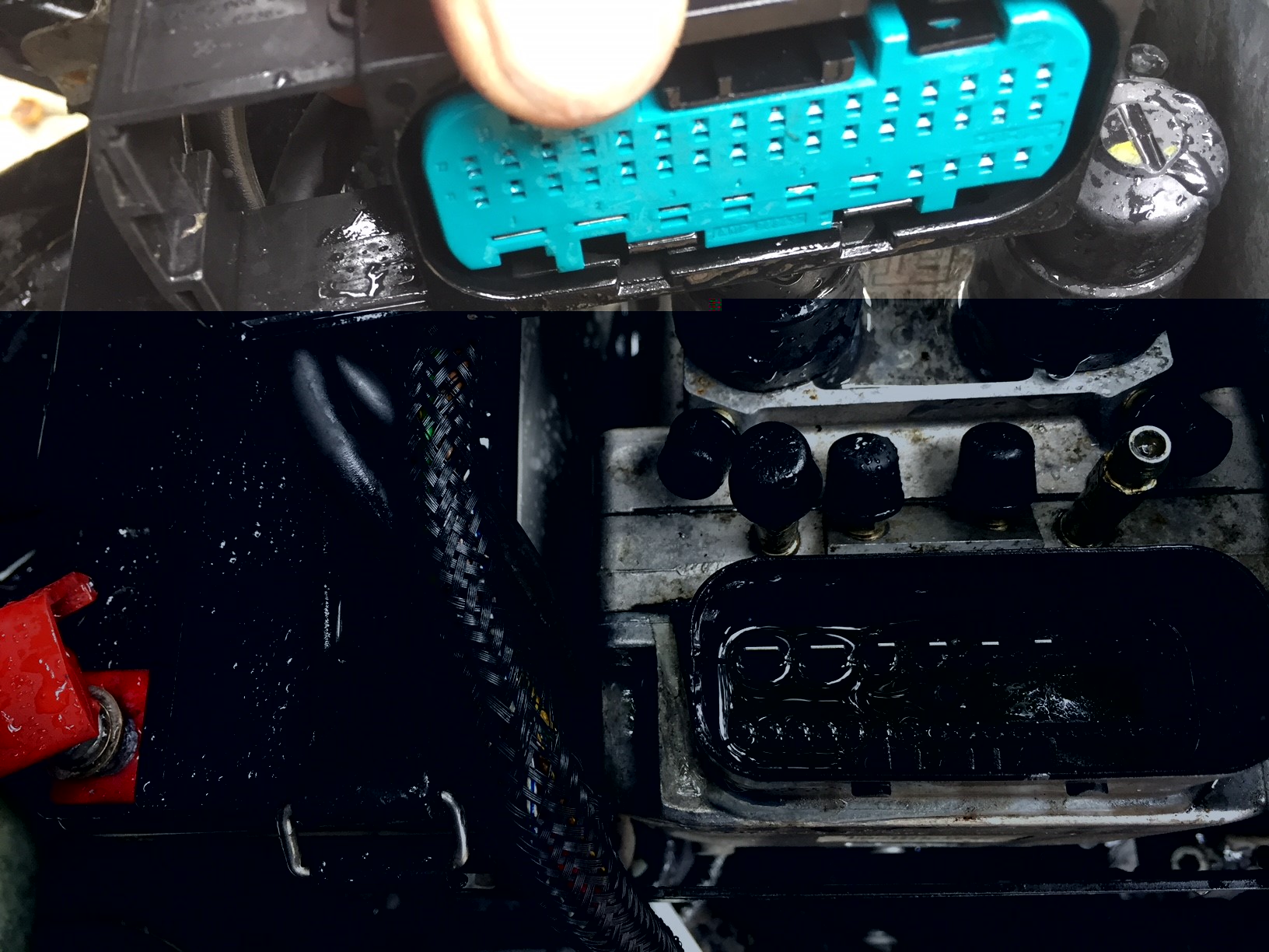 Toen zag ik dat er in die grote plug bovenop ABS pomp 1 klein pinnetje een heel klein beetje scheef stond.