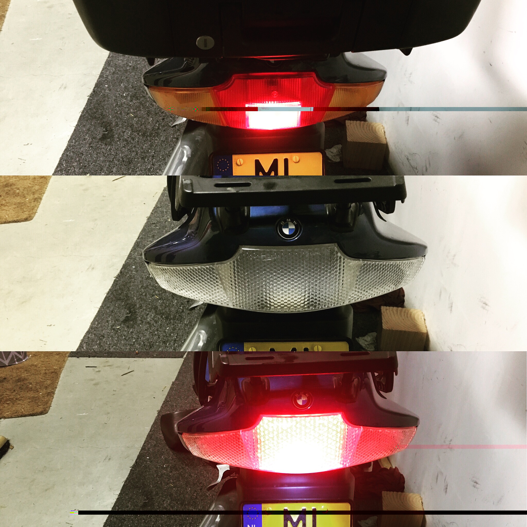 - Of branden rem- en achterlicht al op de onderste foto? In dat geval wordt een vergelijk met de oude situatie - waar het remlicht niet aan staat - wat lastig te trekken.