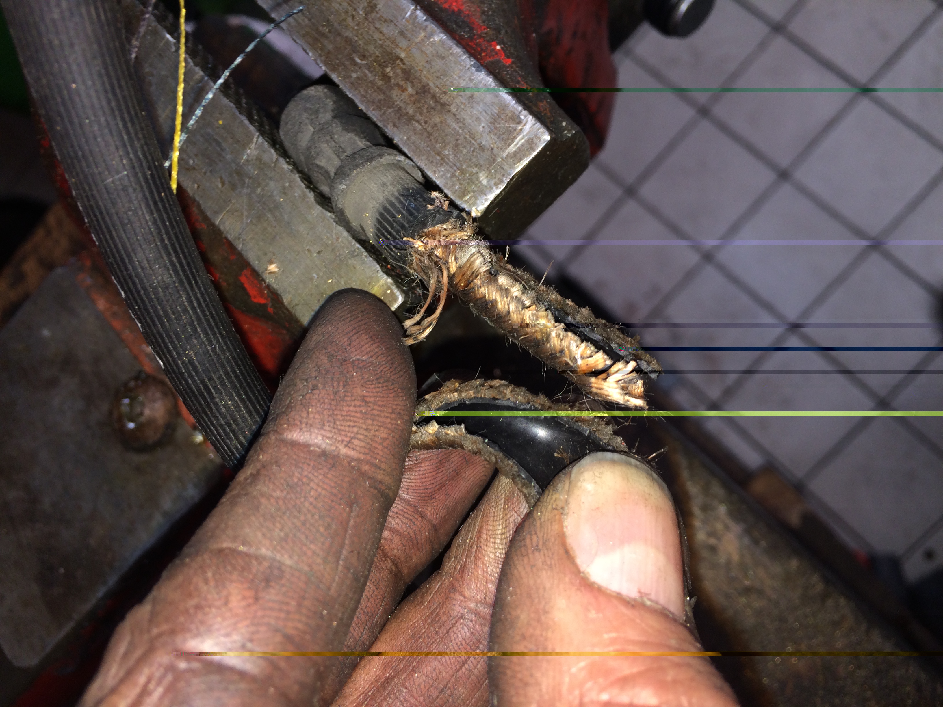 Bijgaand een foto van mijn bevindingen, een opzicht mooi opgebouwde remslang met sterke wapening.