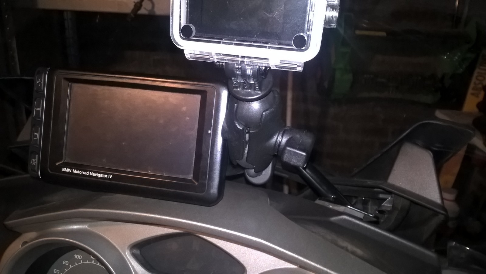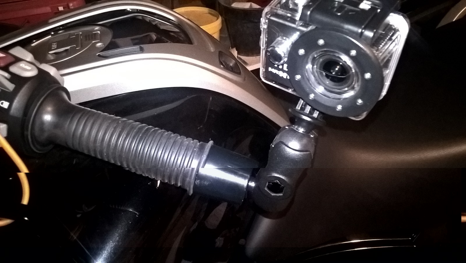 Of zoals ik nu gedaan heb, een RAM Mount setje gekocht. Ook omdat je nu in elke hoek de camera kunt draaien. Echter ook nu loop ik tegen bevestigings problemen aan, want ijzer op ijzer schuift makkelijk op elkaar. Maandag ga ik een constructie maken met extra rubber (op aanraden van een W-collega). Wel komisch, RAM mount setje was ruim 4x duurder dan de camera.