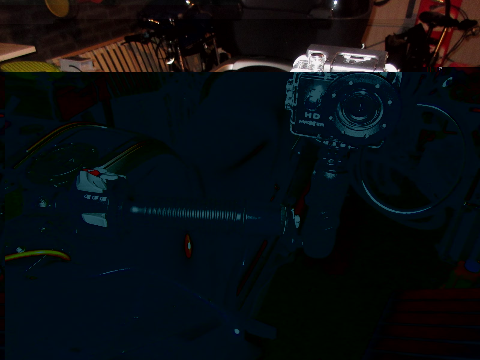 Of zoals ik nu gedaan heb, een RAM Mount setje gekocht. Ook omdat je nu in elke hoek de camera kunt draaien. Echter ook nu loop ik tegen bevestigings problemen aan, want ijzer op ijzer schuift makkelijk op elkaar. Maandag ga ik een constructie maken met extra rubber (op aanraden van een W-collega). Wel komisch, RAM mount setje was ruim 4x duurder dan de camera.