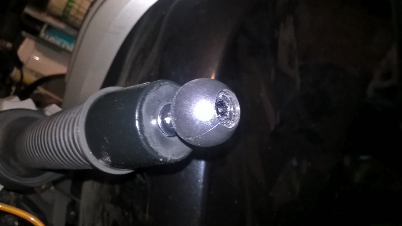 Omdat het stuurgewicht taps afloopt, is de bevestiging onvoldoende, camera zal uiteindelijk los komen. Ik had op het stuureinde een carrossorieschijf kunnen zetten (dan loopt de klem er niet af). Echter ik vond de bevestiging net wat te kort op mijn linkerhand zitten.