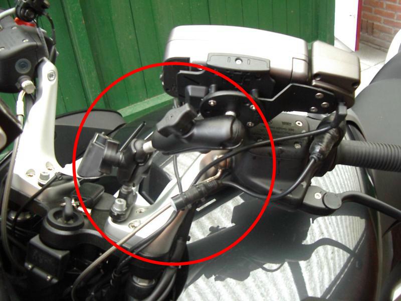 Toen ik nog een R1200RT had, was ik nog in het bezit van zo'n grote Streetpilot 2610 met speciale houder. IK heb deze toen met een Ram Mount op het stuur bevestigd. De kogel hiervoor had ik met verlengde bouten op de plek waar de stuurhelft aan het frame zat bevestigd.