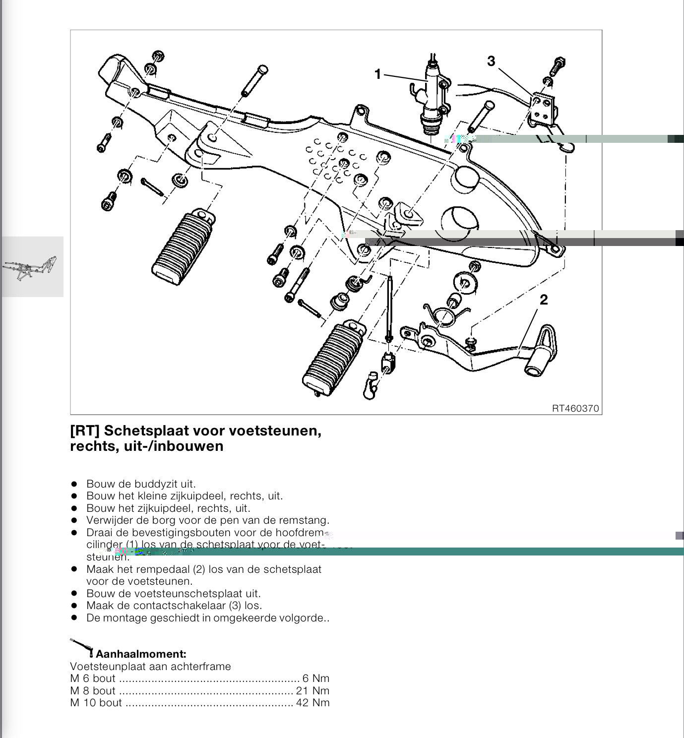 Remleidingen zijn 2 jaar geleden vervangen. Ik denk dat dit echt 1 van de schakelaars is. Ik wil graag weten hoe ik het beste bij de achterremschakelaar kan komen. Moet de hele zijkant eraf of alleen de footplate of wellicht een ander truukje.
