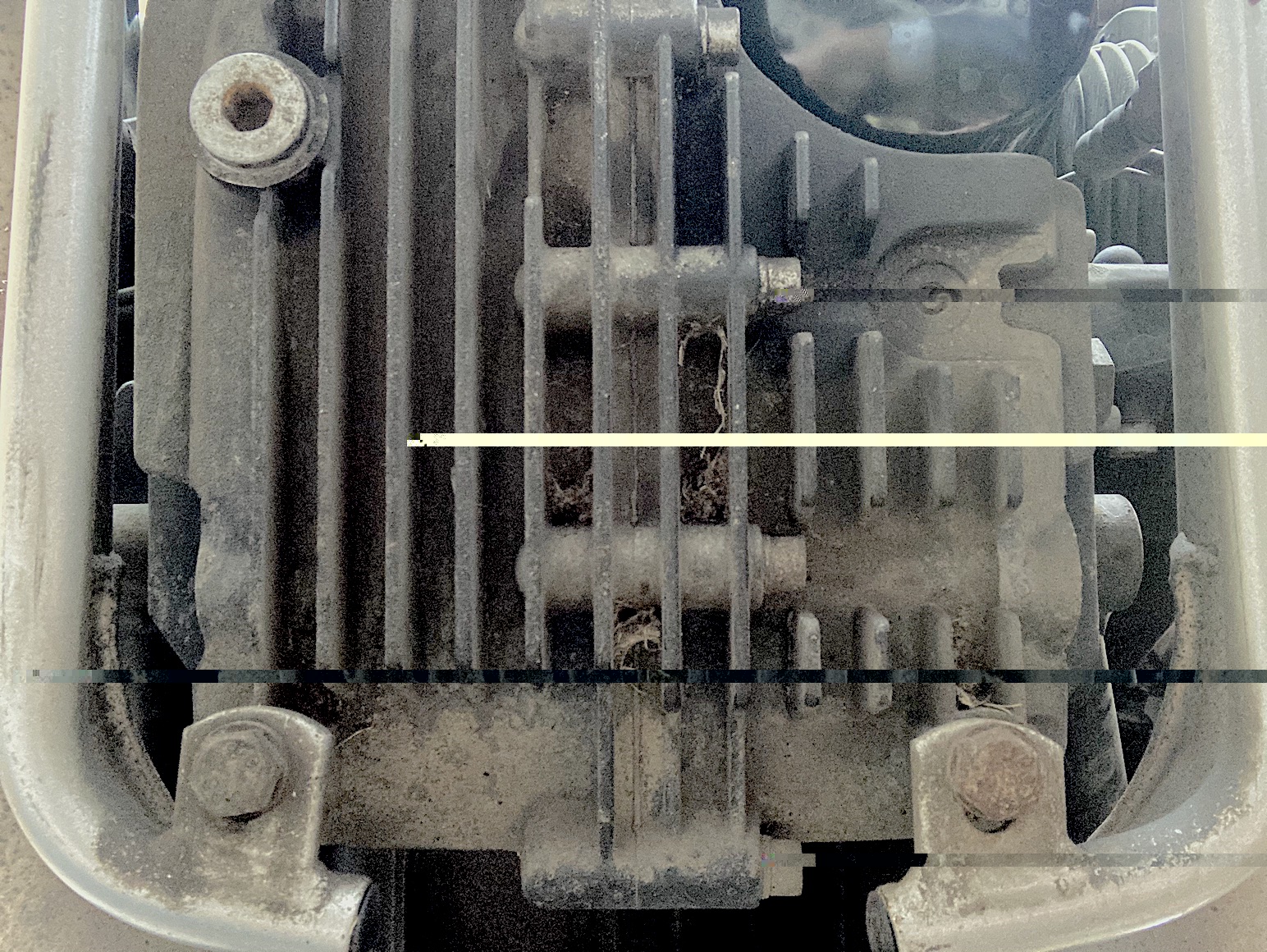 Een foto van het stoffige, maar droge carter van de r1200RT aan de onderzijde