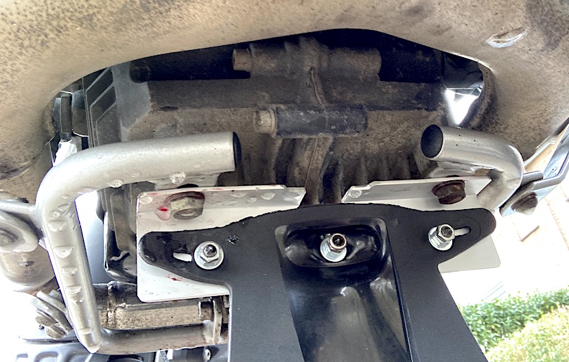 Voor de Rt rijders met een rekje onder het carter waar de valbugels aan zijn bevestigd: Het blijkt niet nodig te zijn om aanpassingen te maken met pasbussen. Het rekje kan rechtstreeks op het rekje met de bestaande bouten. De 2 mm van het aluminium, waar de spijkervanger onder een rechte hoek op gemonteerd zit, maken nauwelijks verschil.