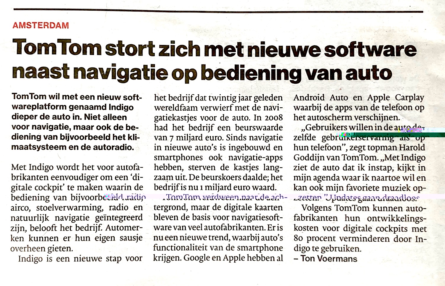 Onderstaand bericht geeft voeding aan bovenstaande geruchten dat de lijn - die TomTom inzet vanaf de 400 tot aan de 550 serie - wellicht niet zal worden gecontinueerd. Naar verluidt richt TomTOM zich op nieuwe markten waar groei en ook volume in zit. Beide ontbreken bij de nichemarkt die gericht is op motornavigatie. Zo verschijnt onderstaand bericht op 1 december 2021 in het Algemeen Dagblad: