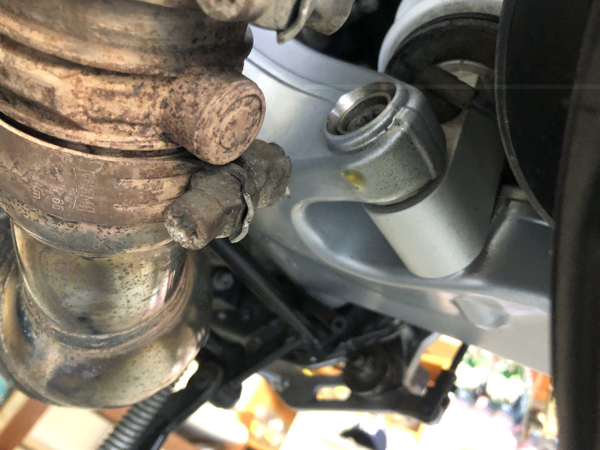 Zie hier, lek aan de achterdemper…meer dan waarschijnlijk ligt het hier aan. Deze week wordt ie vervangen. To be continued