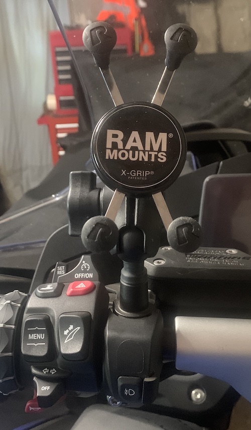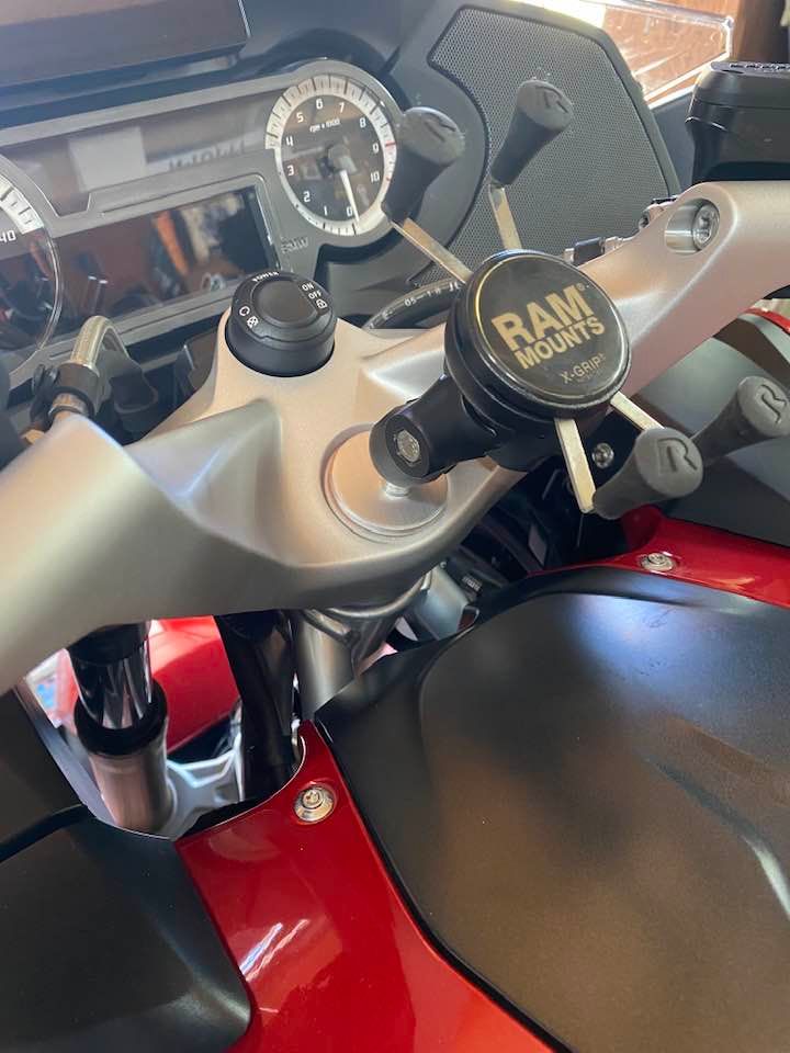 Ik heb een RamMount X-Grip op de linkerstuurhelft geplaatst.