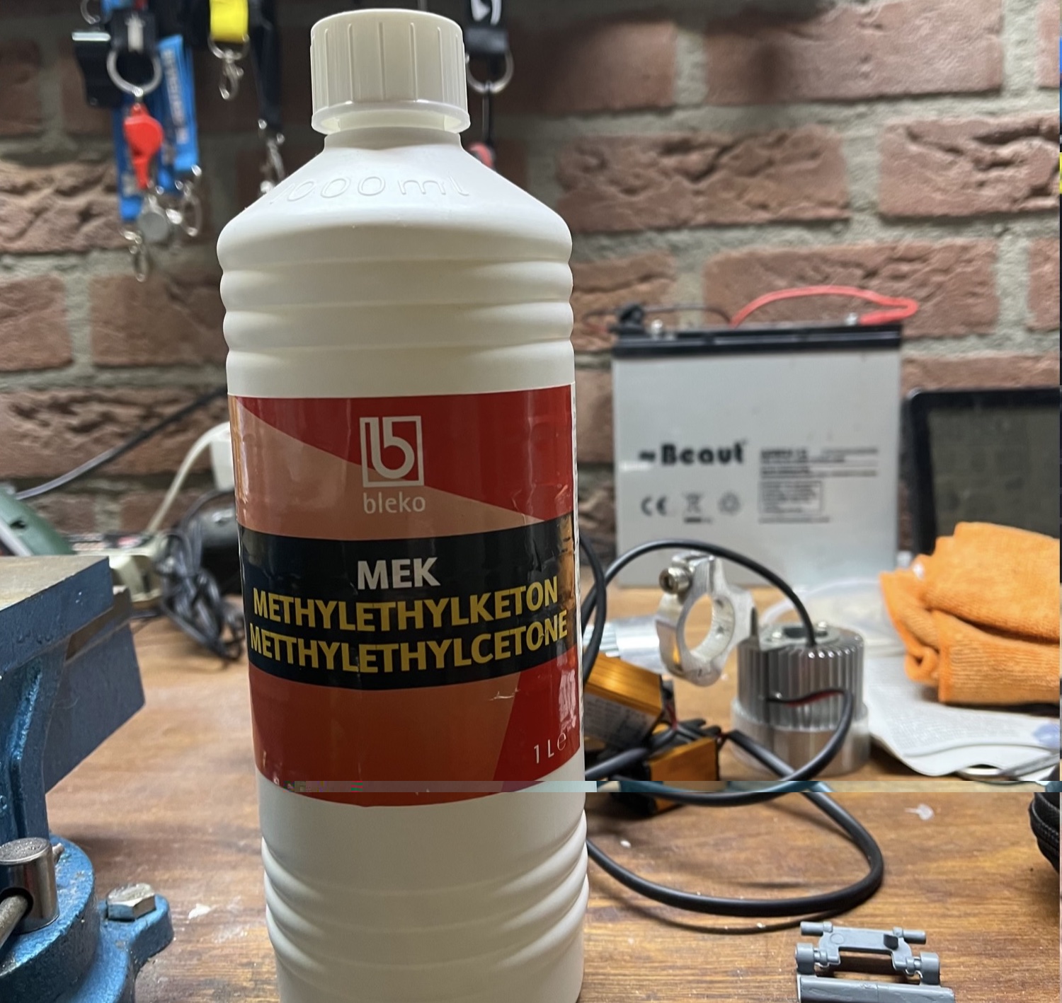 Ordinaire aceton werkt ook perfect. de contactvlakken tussen het kuipdeel en het nokje goed schoonmaken. Daarna nat maken door het nokje te dippen in aceton en dan op de juiste plek duwen. Dat 2 of 3x herhalen. De ABS wordt week, de aceton vervliegt en de las is net zo sterk als hij ooit was. Ik heb op deze manier de bevestigingsogen van het voorspatbord van mijn FJR gerepareerd. Wel èchte aceton gebruiken, geen nagellak remover!