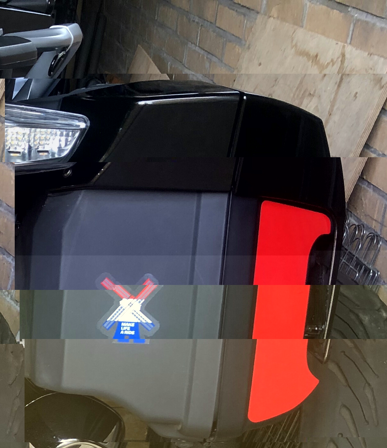Wie o wie weet waar reflecterende stickers te koop zijn voor de achterkant van de zijkoffers van een 1250RT. Mijn vrouw die recent achter mij reed in de auto vond dat het wel allemaal erg zwart is.