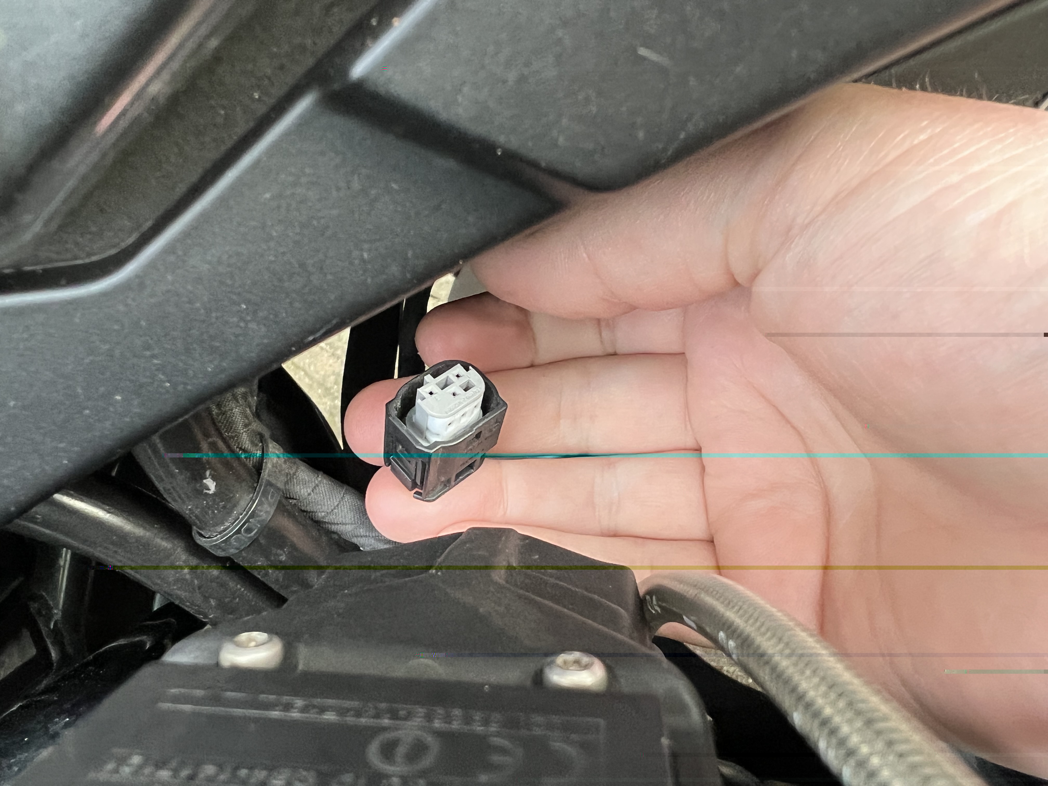 Nu heb ik voorzichtig alle kabels etc gevolg en losgehaald en kom dan ook uit bij een soort fabrieksstekkers waar de extra accessoires ook deels op zaten afgesloten.
