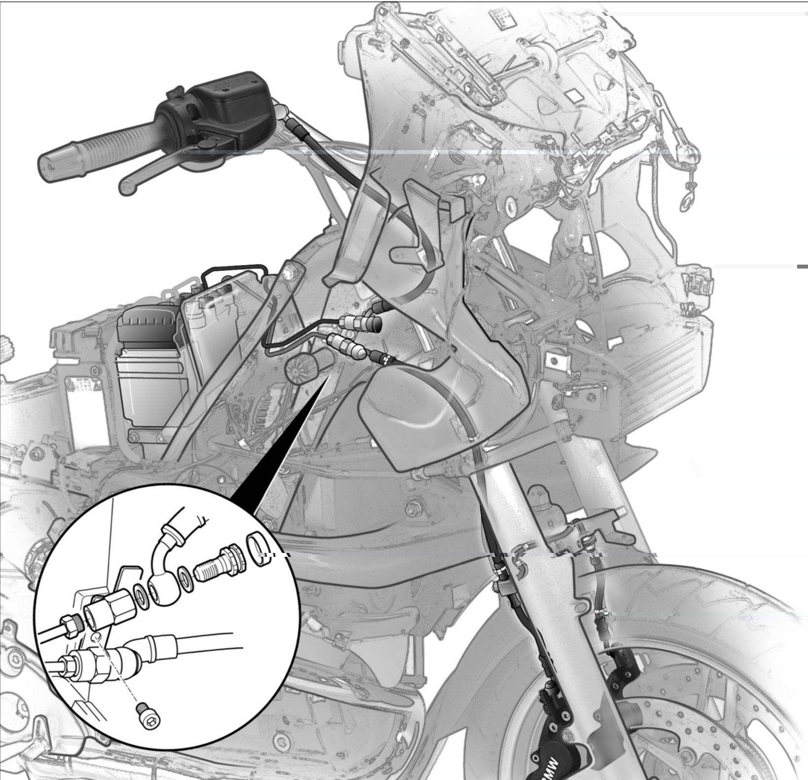 Ik heb gehoord dat de remleiding van de achterrem zo direct op de rempomp gemonteerd kan worden en dat de 2 voorste leidingen op het balhoofd gedeelte ook aan elkaar geschroefd kunnen worden.