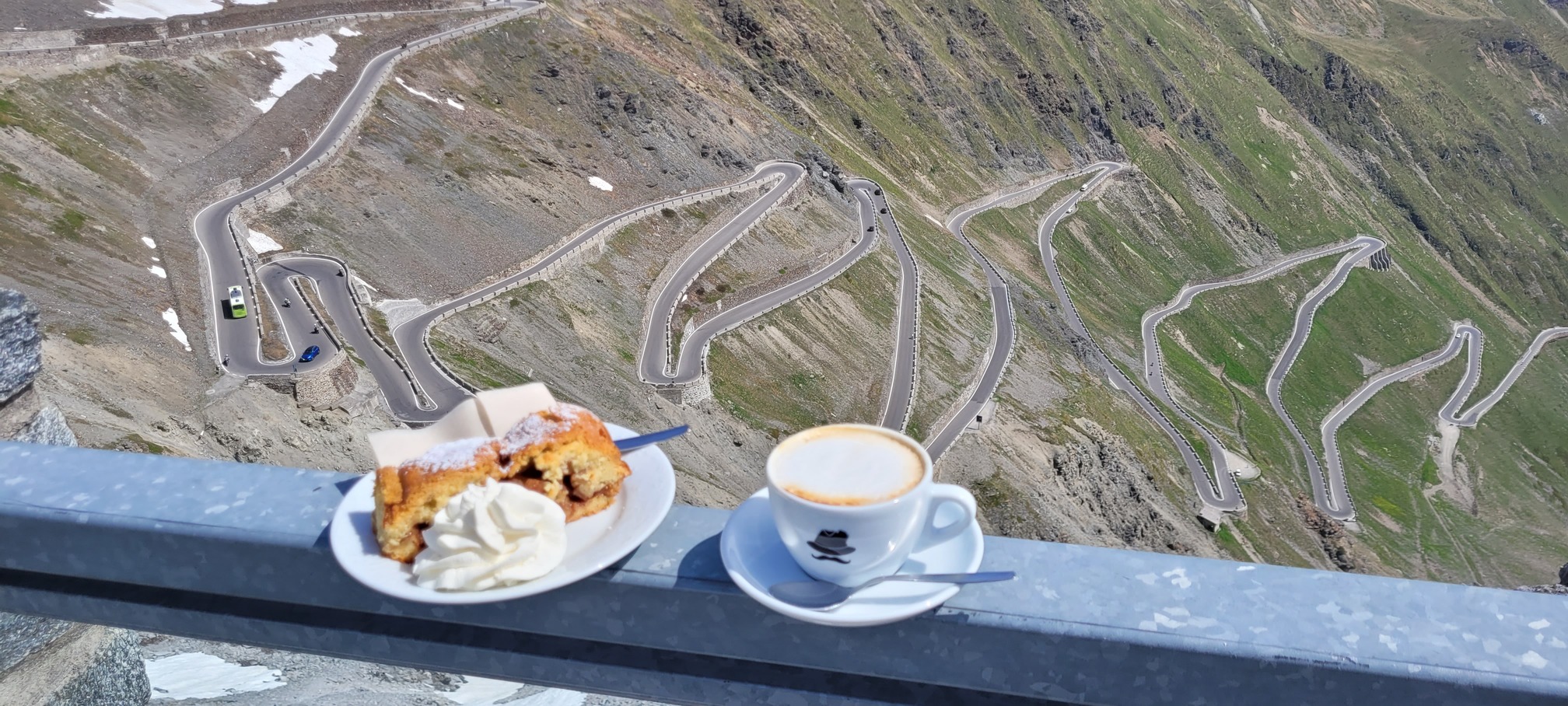 Om half 8 weer aan het ontbijt en om iets na achten in het zadel, menu voor vandaag: lago di Livigno, Umbrail, ja daar is ie dan, de Stelvio, Timmelsjoch naar het Paznauntal.
