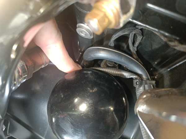 Mijn 1250 lekt (motor?) olie uit een slangetje links van het blok, vlak bij het oliefilter.