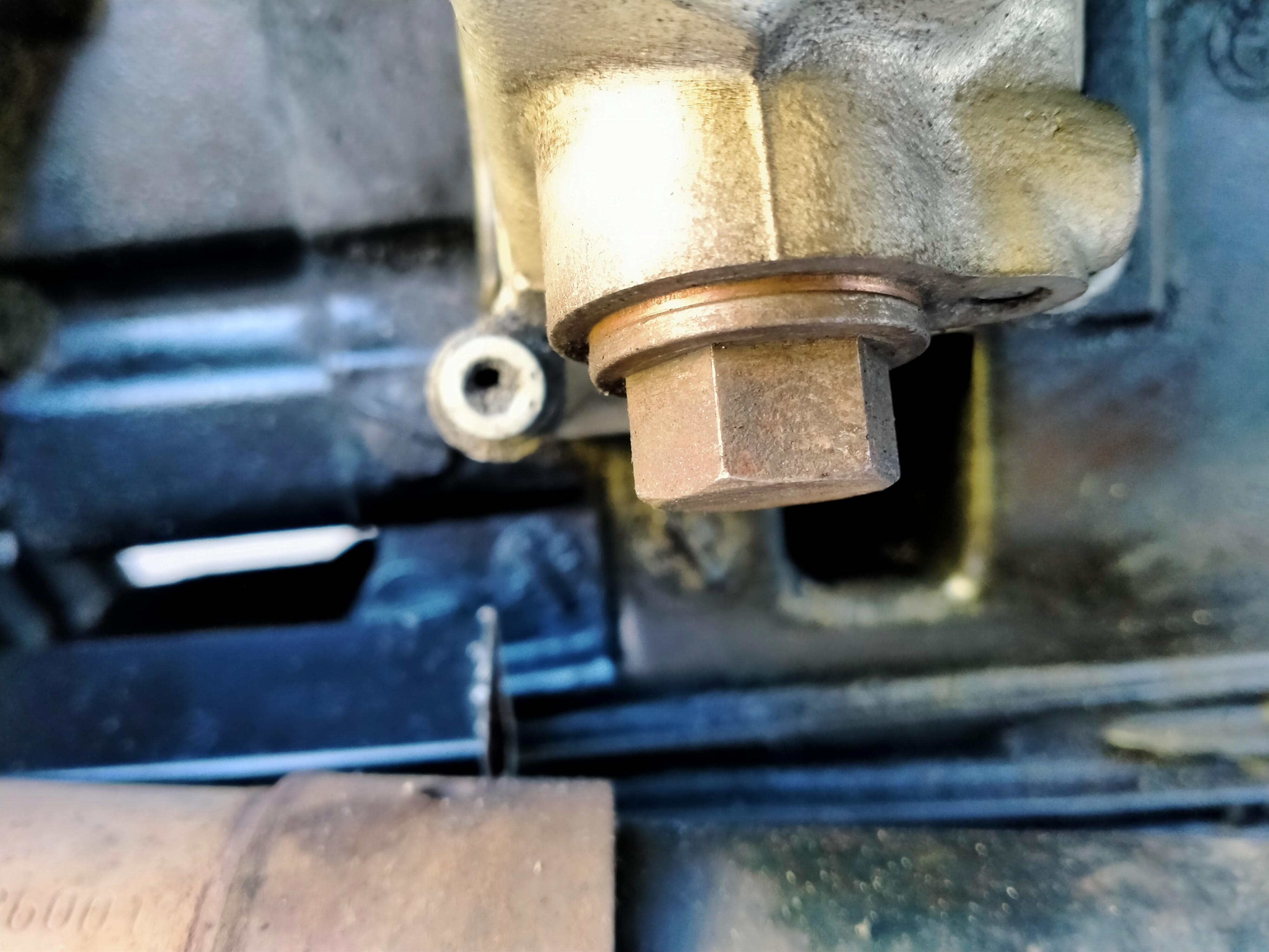 Ja dat is de kettingspanner van de distributieketting. Kan je loshalen , maar volgens mij hoort er geen pakking tussen. vastzetten 32Nm