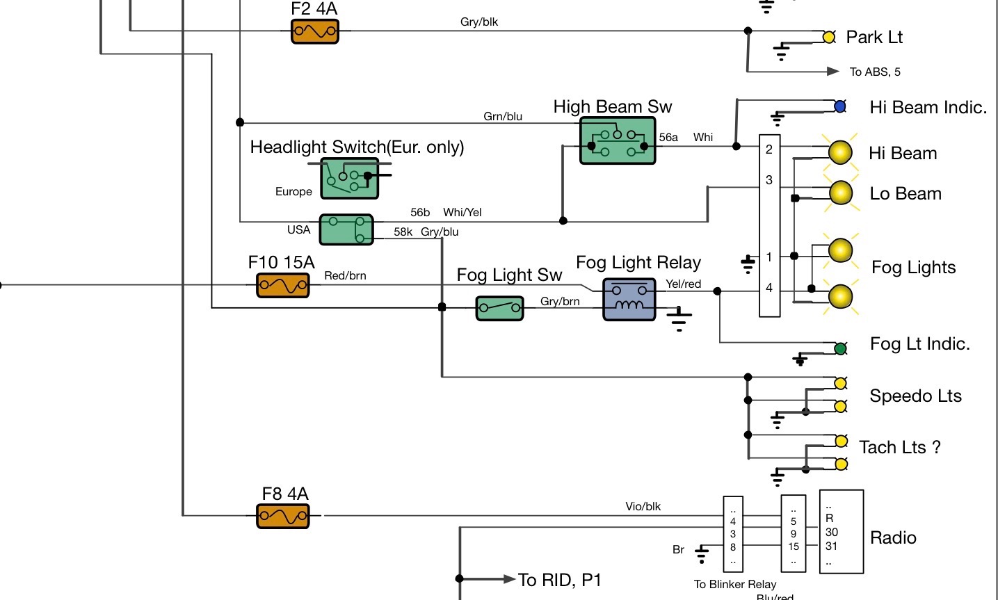 Bedoel je echter een mistlicht aan de achterzijde; Die zit niet standaard op de motorfiets en voor zover mijn informatie strekt komt die er voorlopig ook niet. Dus als er een mistachterlicht op zit, dan is die extra gemonteerd (bij de overheidsfietsen bijvoorbeeld) en moet er ook en indicator voor zien in de vorm van een GEEL waarschuwingslampje!