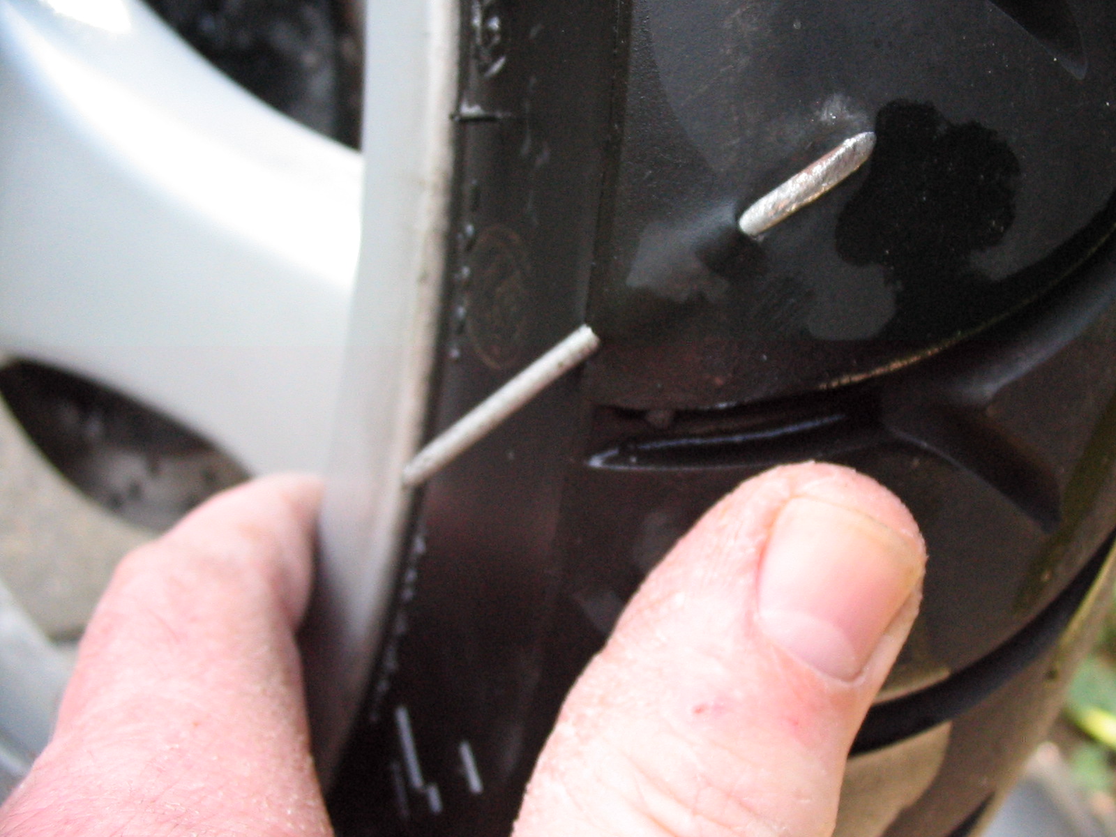 topic over antispijker mudflap was al gesloten. Gisteren dacht ik nog, eigenlijk overbodig laat ik die flap maar niet doen. Vandaag zag ik wat glinsteren in de achterband.