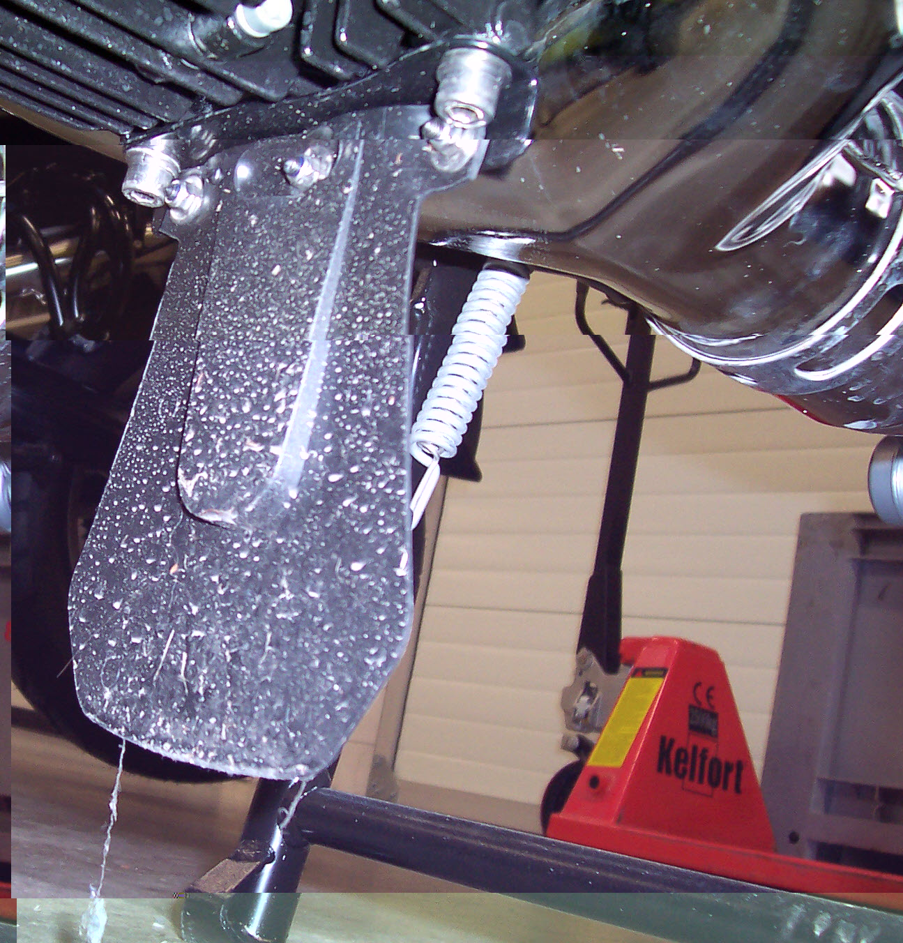 Zoals je kunt zien hangt deze echt *onder* de motor en zal m.i. weinig doen om je schoeisel/voeten droog te houden. ;)
