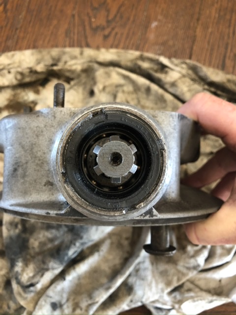 Wanneer de keerring er uit is blijkt dat ook de dubbele lager van het pignonwiel vervangen te moeten worden.