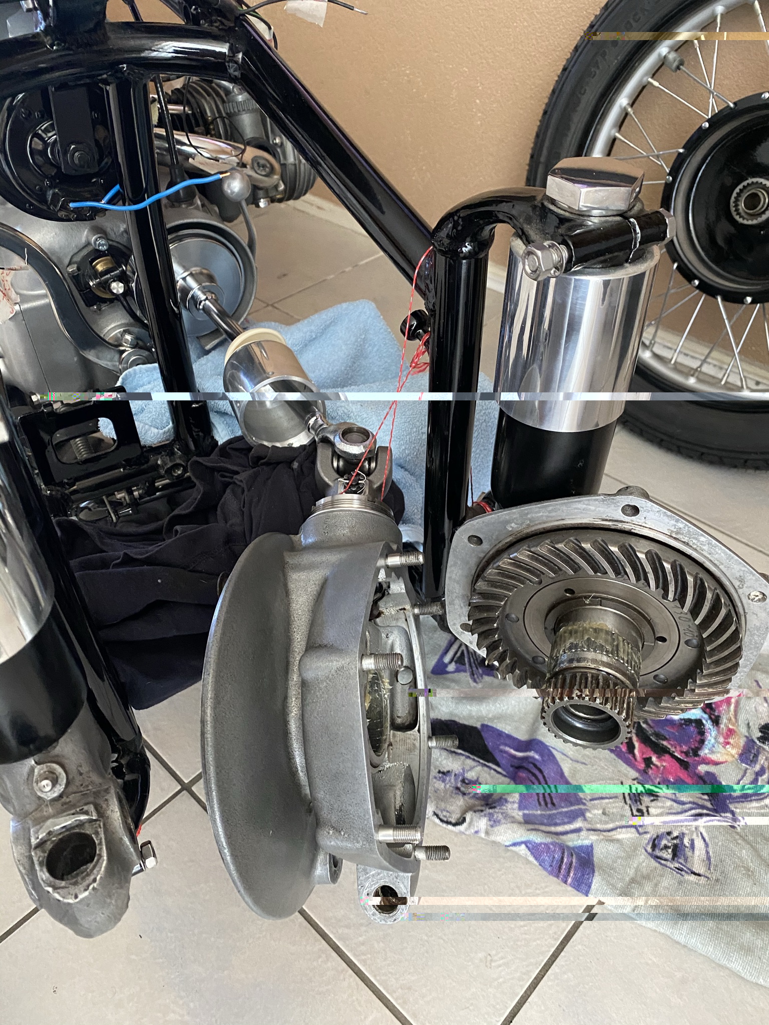 Het monteren van de cardanas en het huis gebeurt als het blok terug is van reparatie.