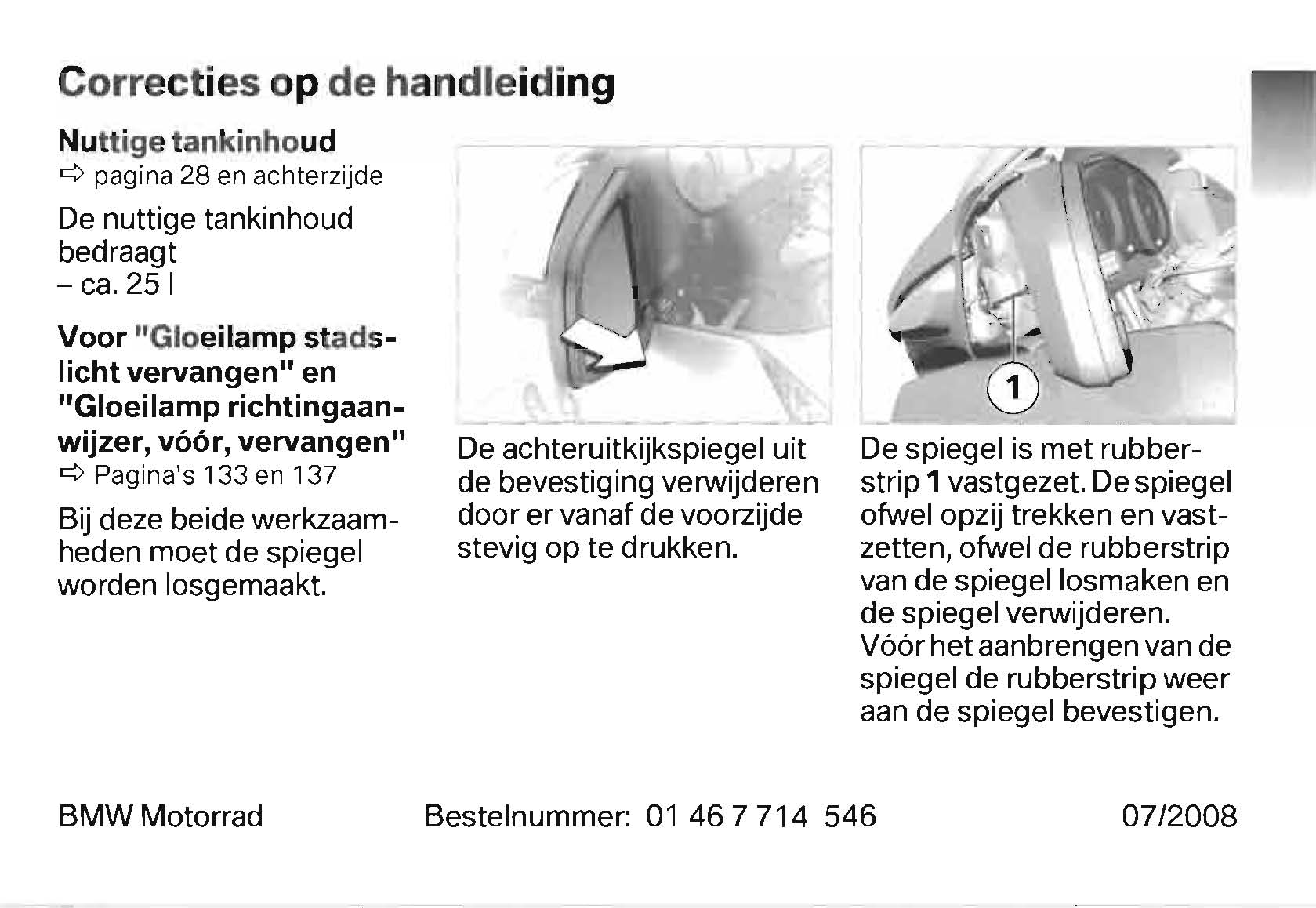 Dus maar eens kijken hoe het nu in elkaar zit, maar tot mijn verbazing zitten er op de nieuwe RT's een soort elastieken die voorkomen dat de spiegel los komt en op de grond valt, dat verklaart ook het extra papiertje bij de handleiding van de motor ...