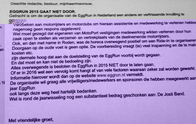 Eggrun 2015 gaat DEFINITIEF niet door volgens dit bericht.