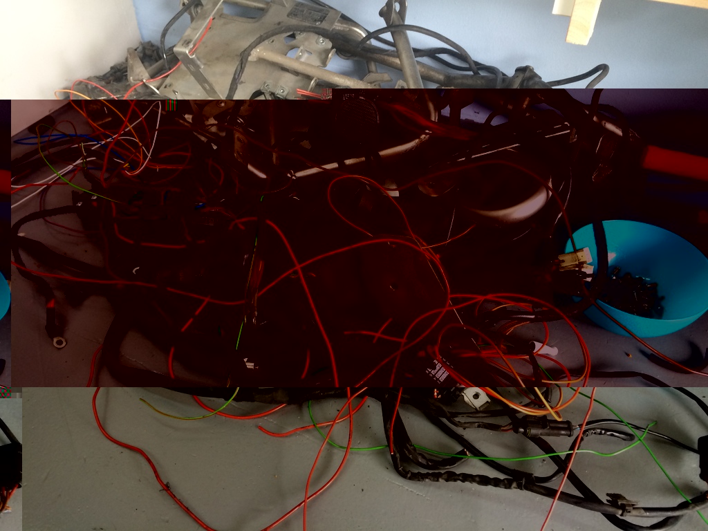 ...en een dagje later nog wat verder kaal. Zonder een bedradingsschema toch alvast maar begonnen met terug volgen van bedrading en deze verwijderd. Weer een aantal kilootjes lichter! Wat een dieet!