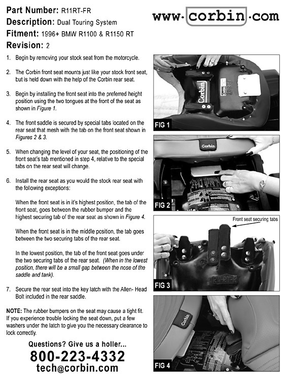Hou er wel rekening mee dat je mogelijk niet altijd een Corbin zadel voor de 11xxRT serie kunt combineren met een ander merk.
