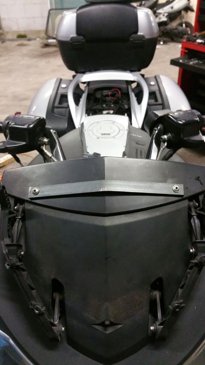 daarna heb ik op het kleine pootje van de T 2 opstaande plaatjes gemaakt en deze rond afgebraamd zodat ik hierop de steun van de Navi Kan bevestigen. Ik heb hiervoor de plastic houder voor in de auto gebruikt omdat ik de motor-steun veel te lomp vond (de navigatie krijgt achter de kuipruit toch niet veel mee van de rijwind).