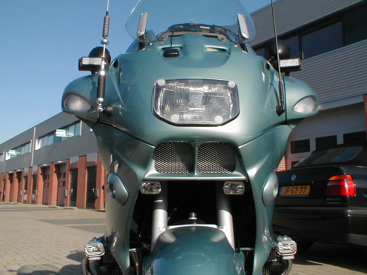 Ik heb nog nooit een 1100RT zo op z'n voorwiel zien staan. :(
