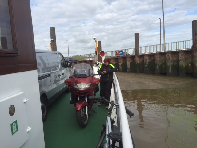 Meteen na aankoop een paar dagen toeren met z'n tweeën, hier op het veerboot(je) over de Ems.
