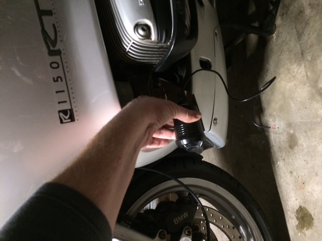 Die oliekoelerverlichting is mooi gelukt, maar ik denk niet dat het aanbevelenswaardig is om er mee te gaan rijden. Het aanzien wordt zo een beetje rommelig.