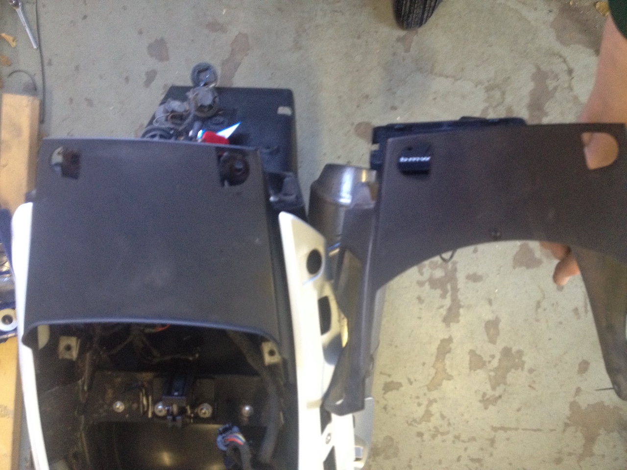 Je moet wel de hele topkuip en het dashboard loshalen omdat de oude knipperlichtbehuizing verwijderd moet worden.