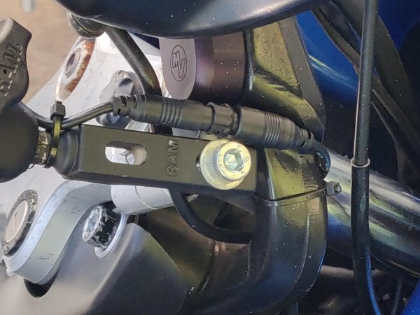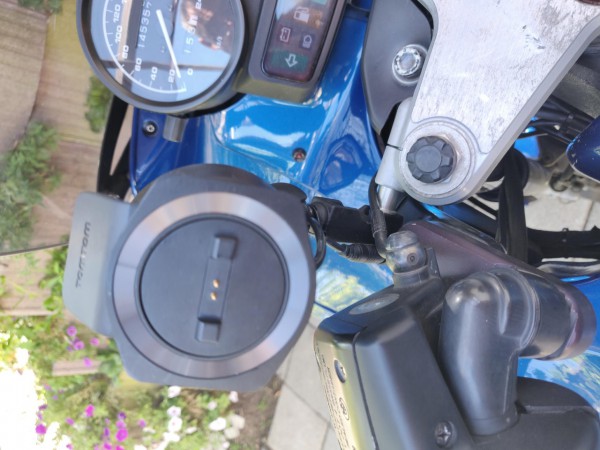 In plaats van een superdure (150euri) mount voor mijn RS,vond mijn monteur een vindingrijke oplossing voor een TomTom .een busje en een iets langere bout,dat is alles wat je nodig hebt.
