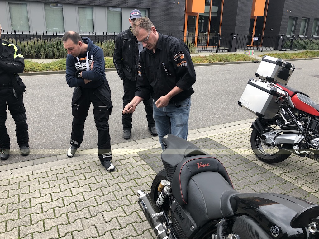 En tot slot werd je eigen motor door John even aan een inspectie onderworpen. Natuurlijk leedvermaak als bij ‘die andere motor’ toch iets niet helemaal in orde is, maar stiekem knijp je ‘m als je eigen motor aan de beurt is :O
