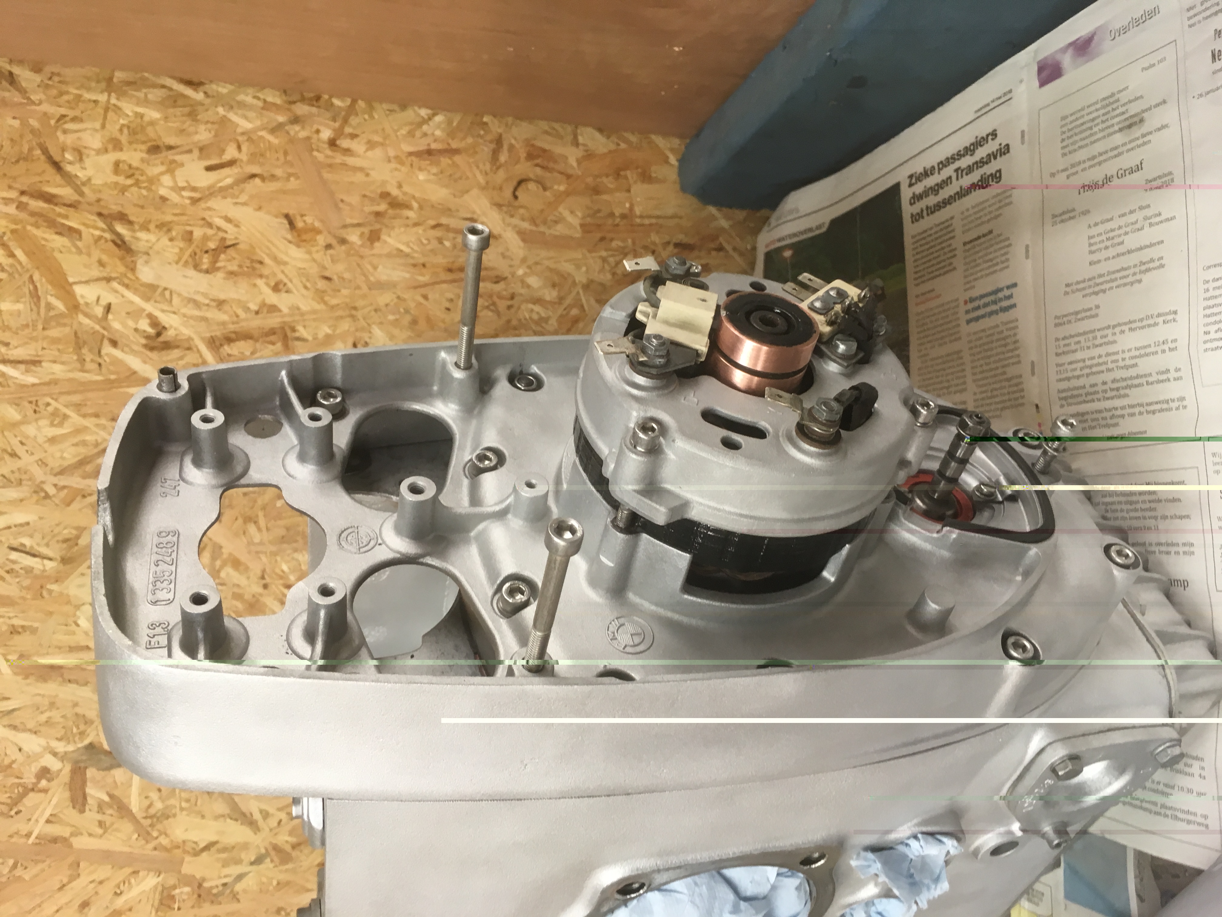 Motorblok schoongemaakt en ook geglaspareld, hierna alle keerringen en pakkingen vernieuwd, drijfstang lagerschalen vernieuwd.