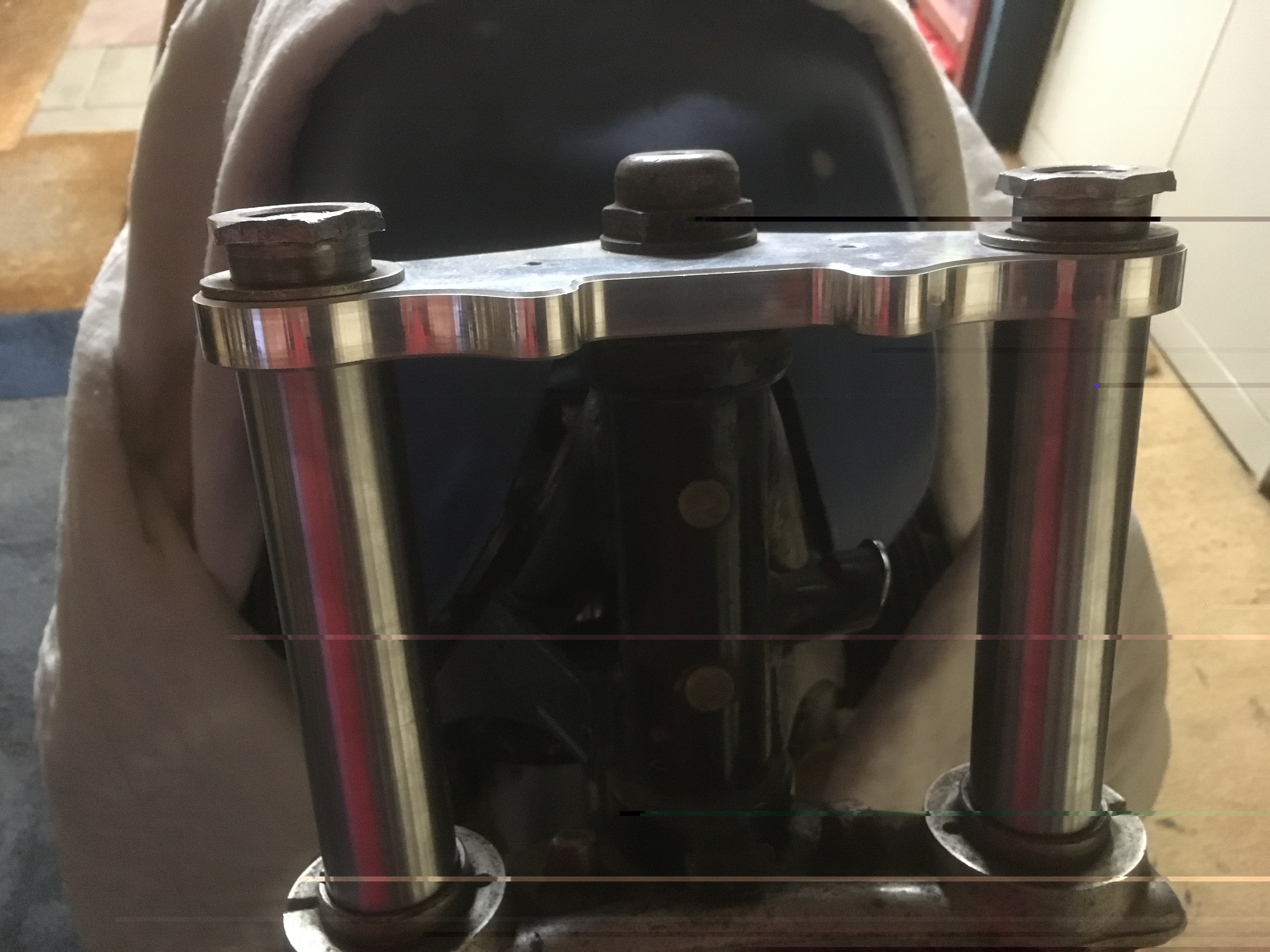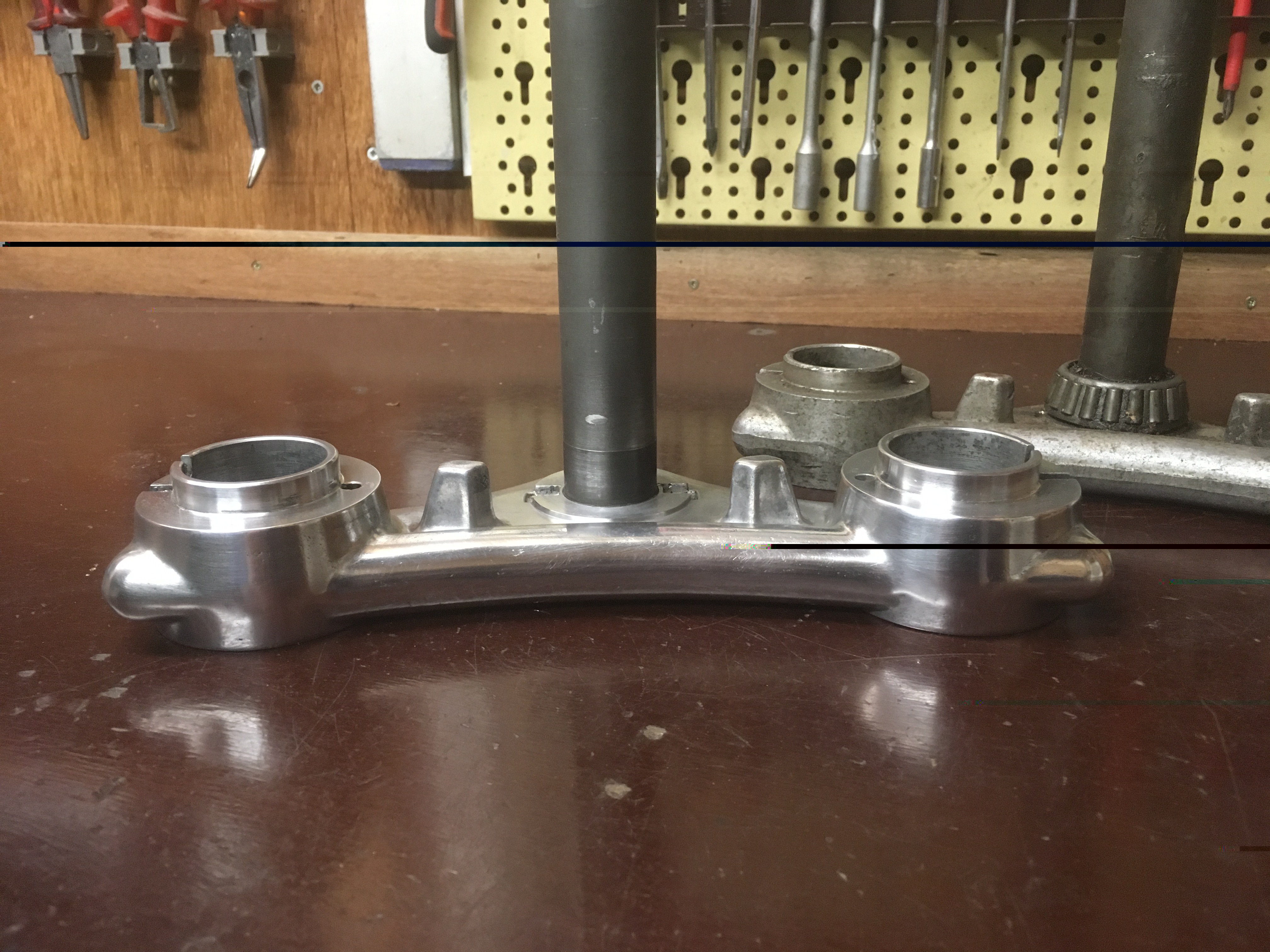 Verschillende delen gepolijst, zoals wielen en de gaffelbrug onder, van de gaffelbrug ook de giet-randen weggehaald,