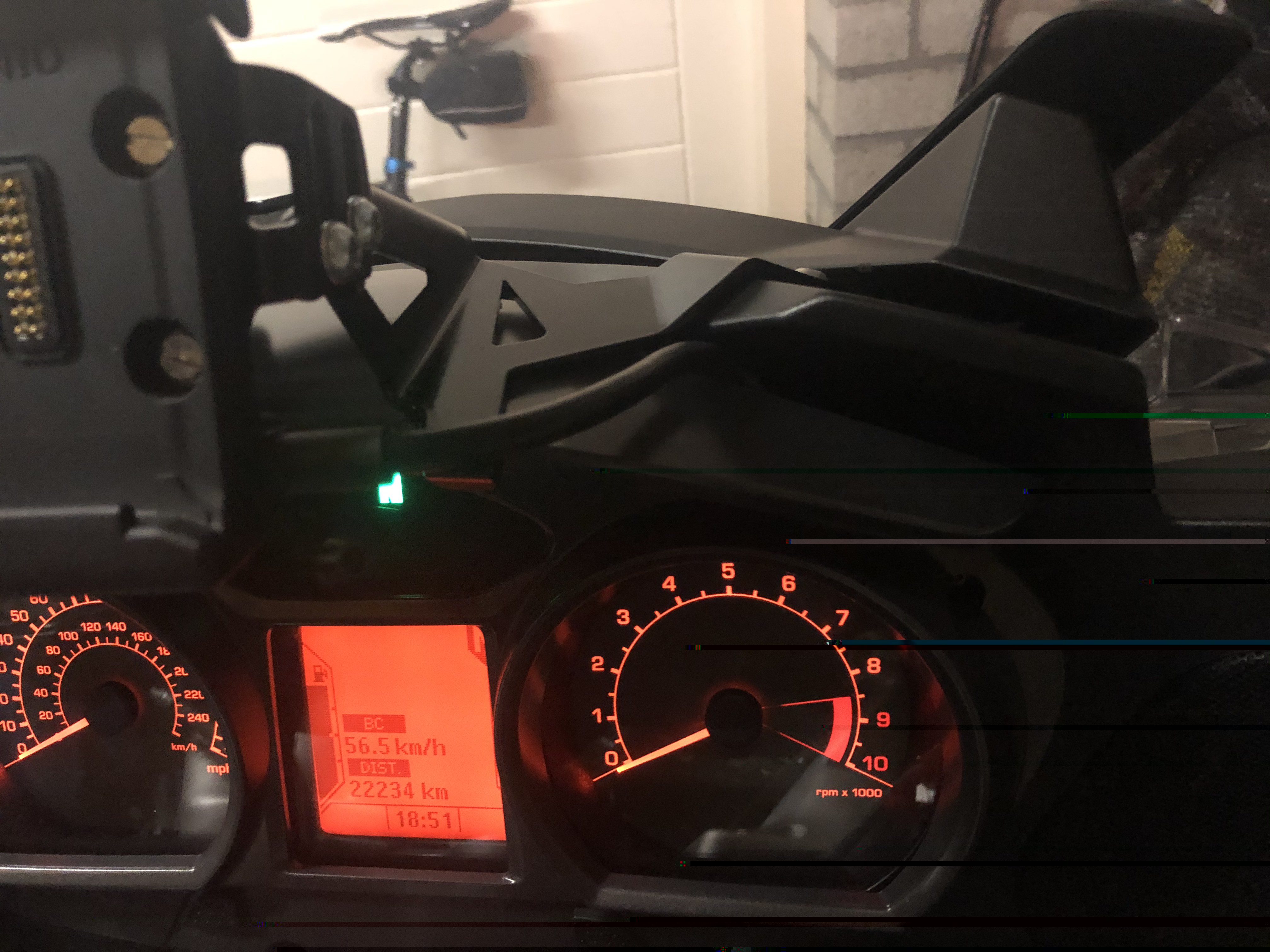 Inmiddels zit de houder erop. Ik heb de kap die op het dashboard zit, met 4 torx bouten, losgehaald. De navi kabel kan dan keurig rond de klok van de toerenteller gelegd worden. Kap er weer op en klaar...! Wilde dit toch even delen. Trots op het resultaat!