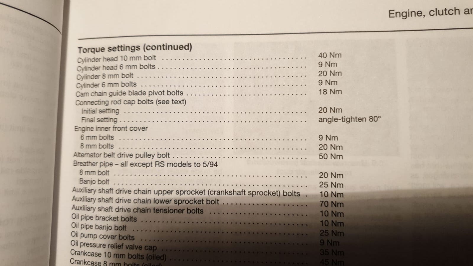 Als ik naar de foto kijk die je gemaakt hebt en dan naar het boek kom ik op 9Nm, bladerend in het boek kom ik mijn eigen aantekeningen tegen en zie daar 15Nm met de pen bij staan, waar ik die laatste waarde vandaan gehaald heb weet ik niet maar zo heb ik ze destijds blijkbaar vast gezet.